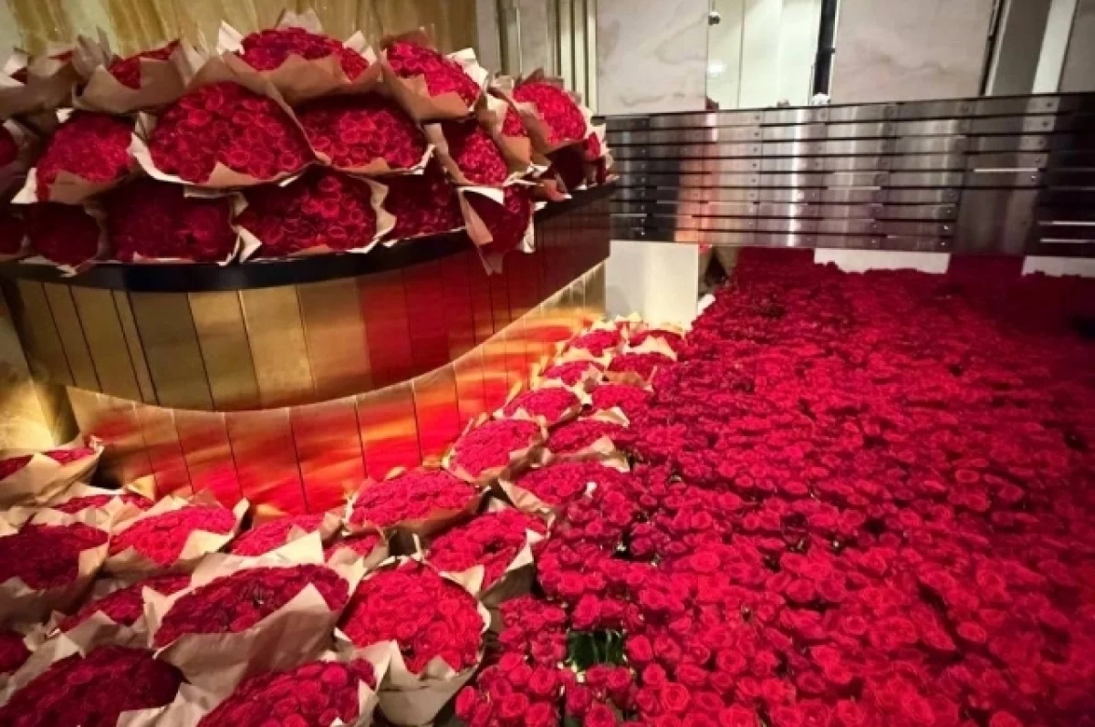 Утром 19 апреля СМИ писали, что в одном из жилых комплексов в районе Раменки весь первый этаж подъезда оказался заполнен розами, а разгрузка шла всю ночь. На кадрах, которые разошлись по соцсетям и медиа, видны плотные ряды красных цветов в ведрах и букетах, расставленные по входной группе и холлу.