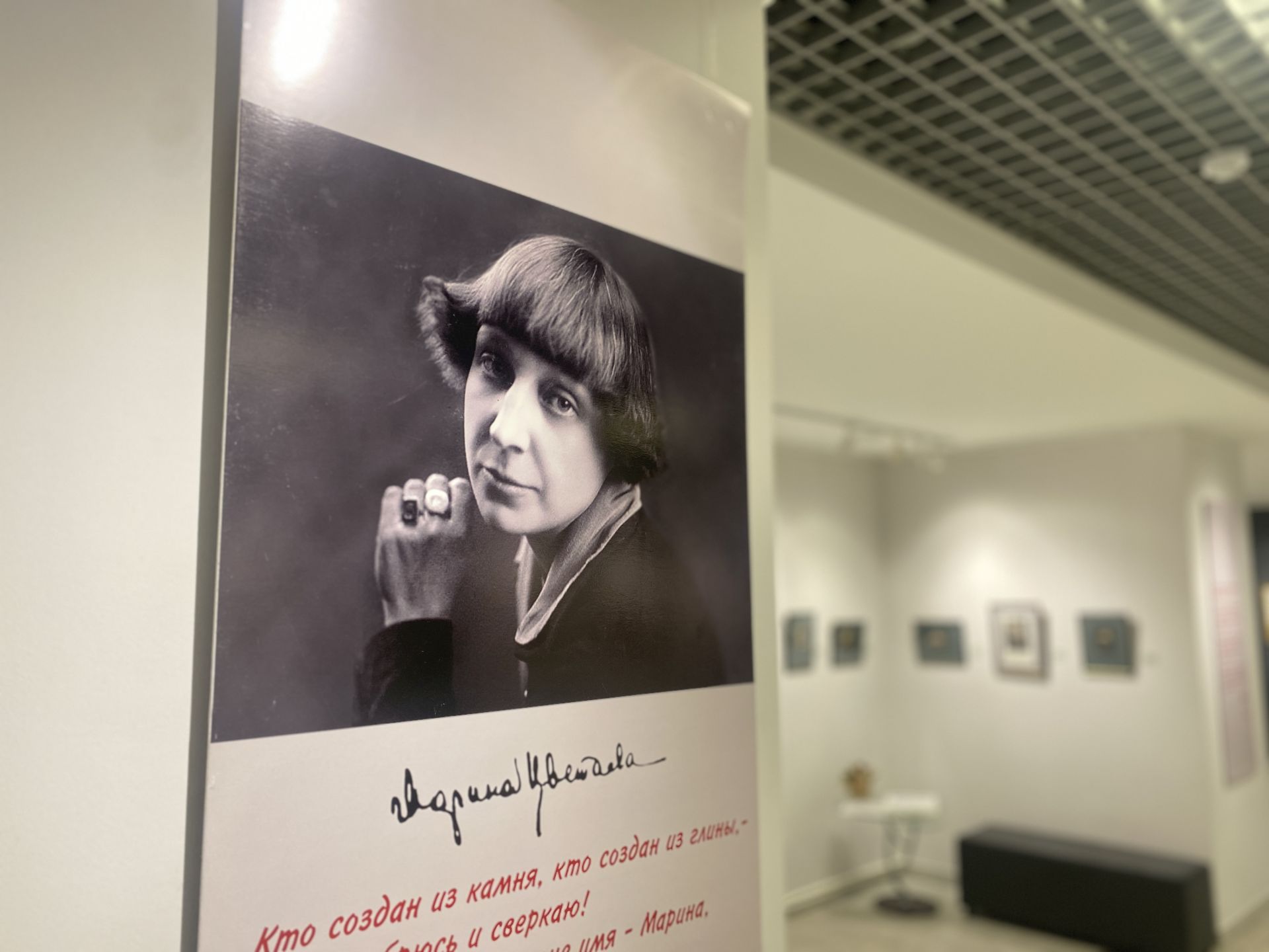 Визуальный ряд дополняют планшеты со стихами, разбавляющие камерные работы не только зрительно, но и по смыслу: здесь подобраны самые известные стихотворения, отражающие мировоззрение Цветаевой. Особенно ценным это оказывается для детей. «Младшие школьники приходят на каникулах, им сложно понять, кто такая Цветаева. Мы начинаем читать стихи, предлагаем выступить как артистам. Они тянут руку, им нравится декламировать. И главное, что они выносят: этот поэт жил и ушел из жизни рядом с нами, в Елабуге», – заключает сотрудница галереи.